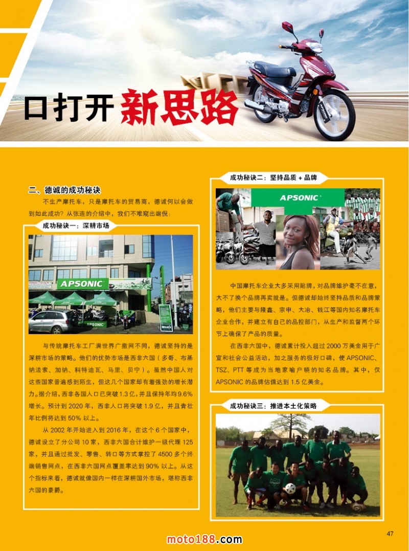 2017.6月《摩托車/電動(dòng)車與配件》雜志,歡迎大家閱讀日期:2017-06-02 點(diǎn)擊:1297 查看原圖 全部展開![]() ![]() ![]() 內(nèi)47 平臺(tái)化生態(tài) 這家企業(yè)為摩托車出口打開新思路