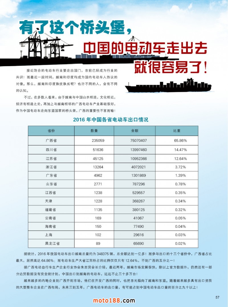 2017.6月《摩托車/電動(dòng)車與配件》雜志,歡迎大家閱讀日期:2017-06-02 點(diǎn)擊:1297 查看原圖 全部展開![]() ![]() ![]() 內(nèi)57 有了這個(gè)橋頭堡,中國(guó)的電動(dòng)車走出去就很容易了!