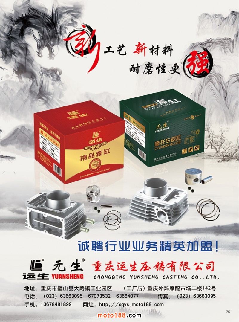 2017.6月《摩托車/電動(dòng)車與配件》雜志,歡迎大家閱讀日期:2017-06-02 點(diǎn)擊:1297 查看原圖 全部展開(kāi)![]() ![]() ![]() 內(nèi)75 重慶運(yùn)生壓鑄有限公司