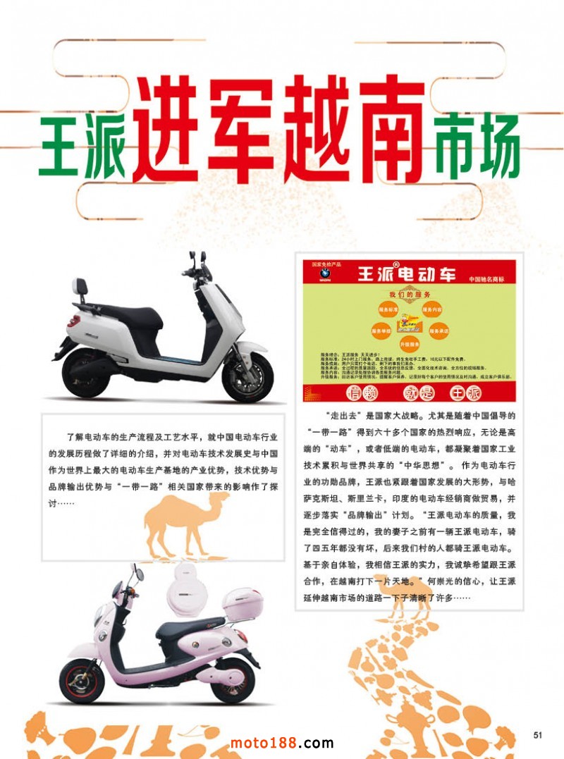 2017.7月《摩托車/電動(dòng)車與配件》雜志,歡迎大家閱讀日期:2017-06-29 點(diǎn)擊:1162 查看原圖 全部展開![]() ![]() ![]() 內(nèi)51 搭“一帶一路”順風(fēng)車,王派進(jìn)軍越南市場(chǎng)
