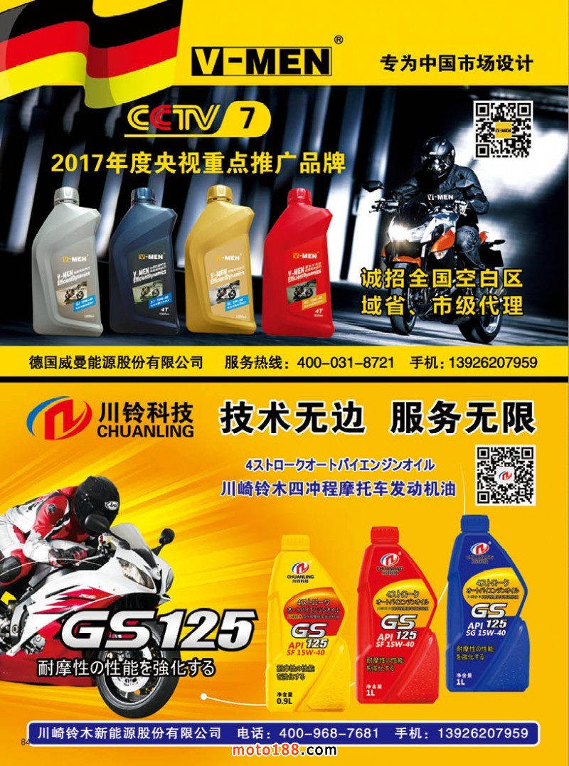 2017.7月《摩托車/電動車與配件》雜志,歡迎大家閱讀日期:2017-06-29 點擊:1162 查看原圖 全部展開![]() ![]() ![]() 內(nèi)84 德國威曼能源股份有限公司