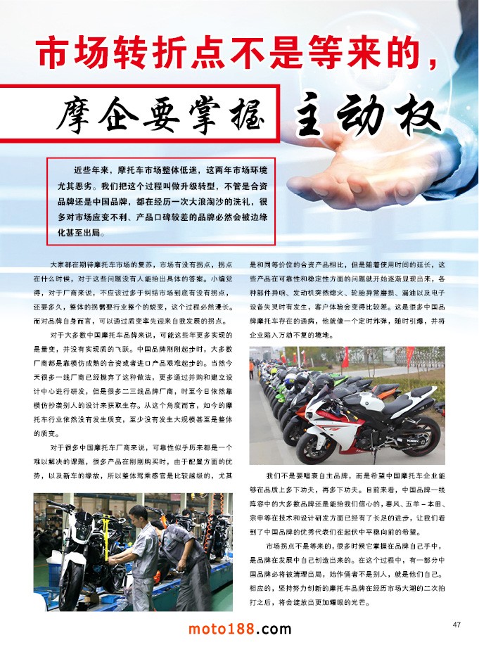 2017.8月《摩托車/電動(dòng)車與配件》雜志,歡迎大家閱讀日期:2017-07-31 點(diǎn)擊:2382 查看原圖 全部展開(kāi)![]() ![]() ![]() 內(nèi)47 市場(chǎng)轉(zhuǎn)折點(diǎn)不是等來(lái)的,摩企要掌握主動(dòng)權(quán)