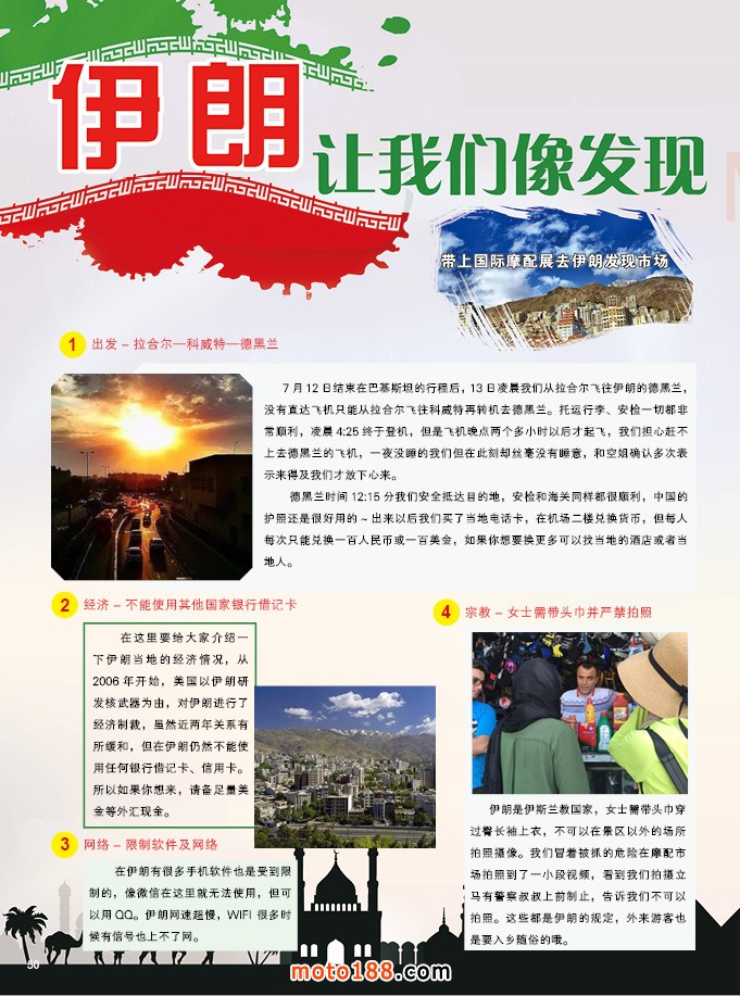2017.8月《摩托車/電動(dòng)車與配件》雜志,歡迎大家閱讀日期:2017-07-31 點(diǎn)擊:2382 查看原圖 全部展開(kāi)![]() ![]() ![]() 內(nèi)50 伊朗,讓我們像發(fā)現(xiàn)“新大陸”一樣興奮的國(guó)家