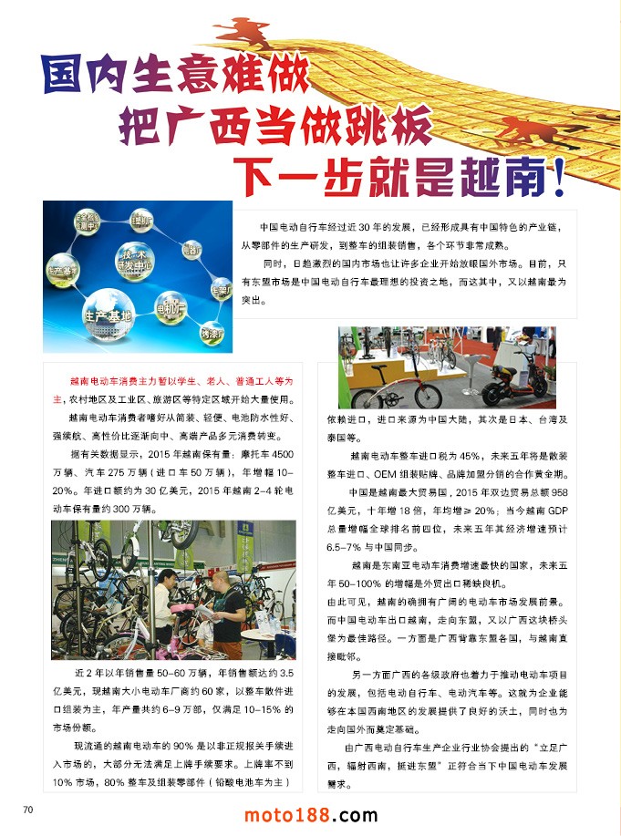 2017.8月《摩托車/電動車與配件》雜志,歡迎大家閱讀日期:2017-07-31 點擊:2382 查看原圖 全部展開![]() ![]() ![]() 內(nèi)70 國內(nèi)生意難做,把廣西當(dāng)做跳板,下一步就是越南!