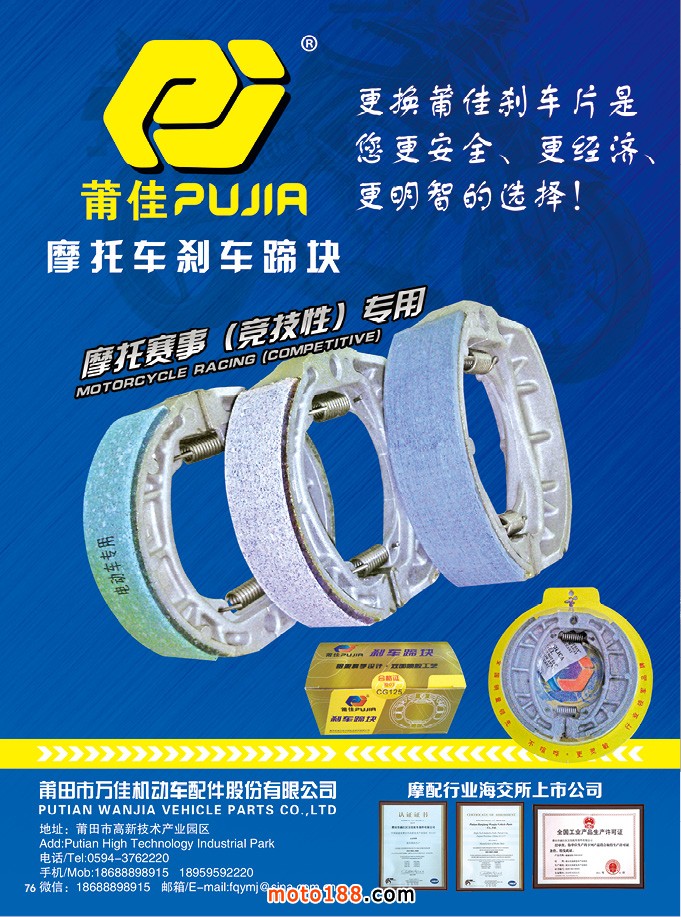 2017.8月《摩托車(chē)/電動(dòng)車(chē)與配件》雜志,歡迎大家閱讀日期:2017-07-31 點(diǎn)擊:2382 查看原圖 全部展開(kāi)![]() ![]() ![]() 內(nèi)76 莆田市萬(wàn)佳機(jī)動(dòng)車(chē)配件股份有限公司