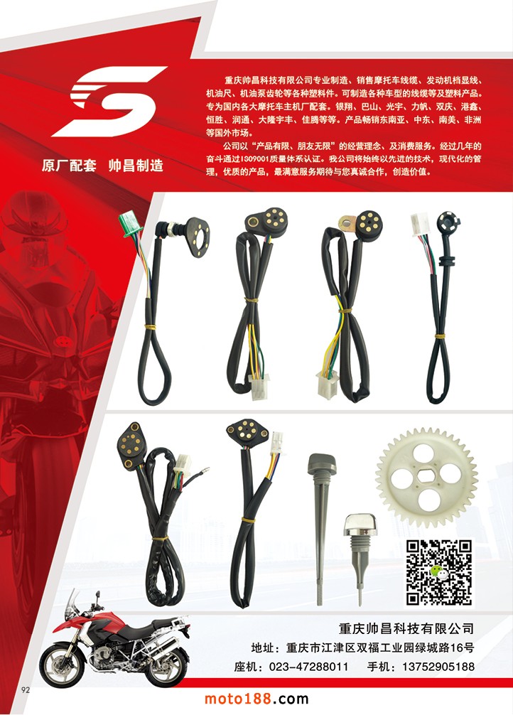 由《摩托車與配件》雜志社,在國內(nèi)首次獨(dú)家推出的《中國摩托車配件外貿(mào)市場指南》工具書正式面世。這是一本專業(yè)定位于外貿(mào)企業(yè)的工具書,隨著一帶一路發(fā)展戰(zhàn)略的推進(jìn),更多企業(yè)走出國門,將產(chǎn)品銷往世界各地,本書收集了國內(nèi)主要從事摩托車配件外貿(mào)的工廠、商家、國外部分駐華采購機(jī)構(gòu)等資料匯總而成.