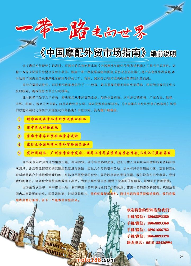 內(nèi)99 《中國(guó)摩配外貿(mào)市場(chǎng)指南》編前說(shuō)明