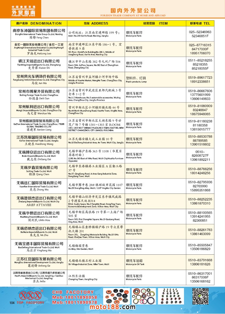 由《摩托車與配件》雜志社,在國內(nèi)首次獨(dú)家推出的《中國摩托車配件外貿(mào)市場指南》工具書正式面世。這是一本專業(yè)定位于外貿(mào)企業(yè)的工具書,隨著一帶一路發(fā)展戰(zhàn)略的推進(jìn),更多企業(yè)走出國門,將產(chǎn)品銷往世界各地,本書收集了國內(nèi)主要從事摩托車配件外貿(mào)的工廠、商家、國外部分駐華采購機(jī)構(gòu)等資料匯總而成.