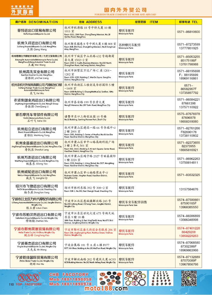 由《摩托車與配件》雜志社,在國(guó)內(nèi)首次獨(dú)家推出的《中國(guó)摩托車配件外貿(mào)市場(chǎng)指南》工具書(shū)正式面世。這是一本專業(yè)定位于外貿(mào)企業(yè)的工具書(shū),隨著一帶一路發(fā)展戰(zhàn)略的推進(jìn),更多企業(yè)走出國(guó)門,將產(chǎn)品銷往世界各地,本書(shū)收集了國(guó)內(nèi)主要從事摩托車配件外貿(mào)的工廠、商家、國(guó)外部分駐華采購(gòu)機(jī)構(gòu)等資料匯總而成.