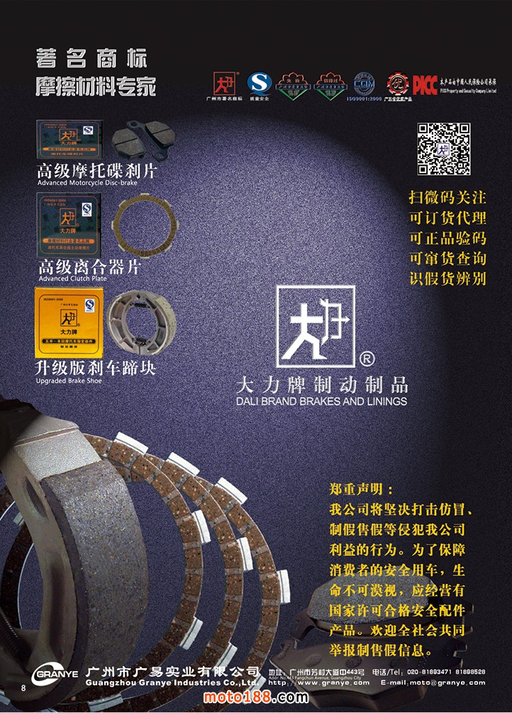 由《摩托車與配件》雜志社,在國(guó)內(nèi)首次獨(dú)家推出的《中國(guó)摩托車配件外貿(mào)市場(chǎng)指南》工具書正式面世。這是一本專業(yè)定位于外貿(mào)企業(yè)的工具書,隨著一帶一路發(fā)展戰(zhàn)略的推進(jìn),更多企業(yè)走出國(guó)門,將產(chǎn)品銷往世界各地,本書收集了國(guó)內(nèi)主要從事摩托車配件外貿(mào)的工廠、商家、國(guó)外部分駐華采購機(jī)構(gòu)等資料匯總而成.