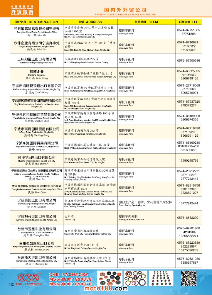 由《摩托車與配件》雜志社,在國內首次獨家推出的《中國摩托車配件外貿市場指南》工具書正式面世。這是一本專業(yè)定位于外貿企業(yè)的工具書,隨著一帶一路發(fā)展戰(zhàn)略的推進,更多企業(yè)走出國門,將產品銷往世界各地,本書收集了國內主要從事摩托車配件外貿的工廠、商家、國外部分駐華采購機構等資料匯總而成.