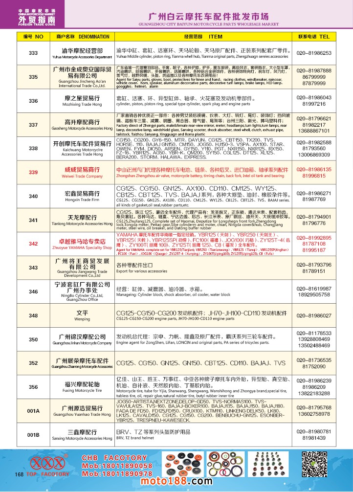 由《摩托車與配件》雜志社,在國(guó)內(nèi)首次獨(dú)家推出的《中國(guó)摩托車配件外貿(mào)市場(chǎng)指南》工具書正式面世。這是一本專業(yè)定位于外貿(mào)企業(yè)的工具書,隨著一帶一路發(fā)展戰(zhàn)略的推進(jìn),更多企業(yè)走出國(guó)門,將產(chǎn)品銷往世界各地,本書收集了國(guó)內(nèi)主要從事摩托車配件外貿(mào)的工廠、商家、國(guó)外部分駐華采購(gòu)機(jī)構(gòu)等資料匯總而成.