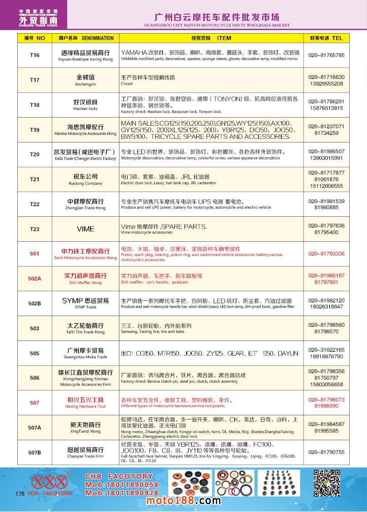 由《摩托車與配件》雜志社,在國(guó)內(nèi)首次獨(dú)家推出的《中國(guó)摩托車配件外貿(mào)市場(chǎng)指南》工具書(shū)正式面世。這是一本專業(yè)定位于外貿(mào)企業(yè)的工具書(shū),隨著一帶一路發(fā)展戰(zhàn)略的推進(jìn),更多企業(yè)走出國(guó)門(mén),將產(chǎn)品銷往世界各地,本書(shū)收集了國(guó)內(nèi)主要從事摩托車配件外貿(mào)的工廠、商家、國(guó)外部分駐華采購(gòu)機(jī)構(gòu)等資料匯總而成.