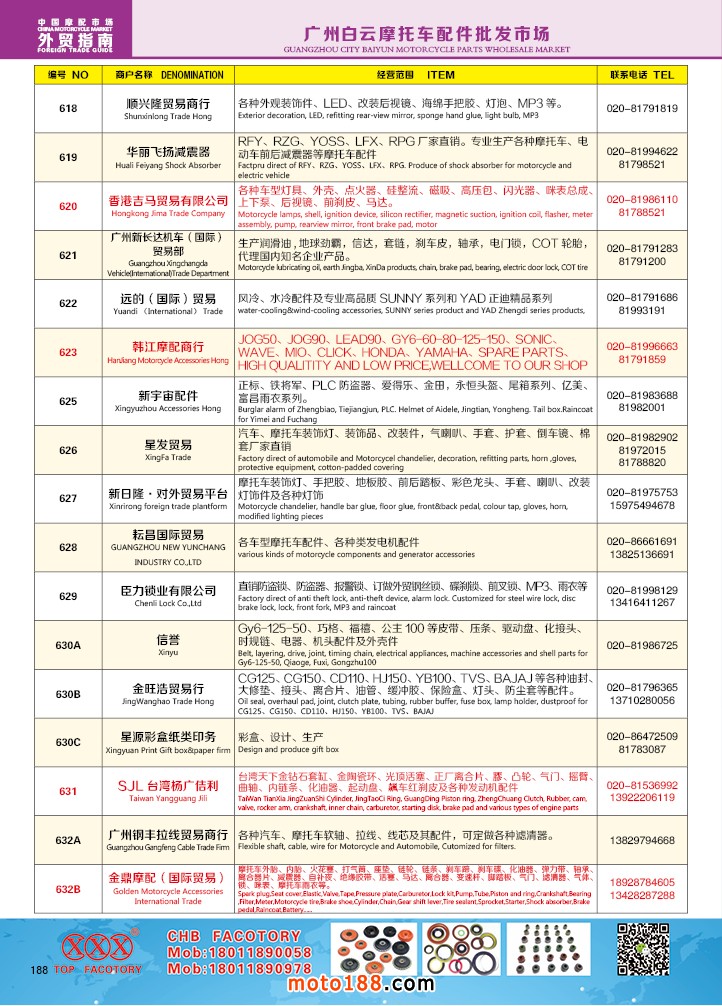 由《摩托車與配件》雜志社,在國(guó)內(nèi)首次獨(dú)家推出的《中國(guó)摩托車配件外貿(mào)市場(chǎng)指南》工具書正式面世。這是一本專業(yè)定位于外貿(mào)企業(yè)的工具書,隨著一帶一路發(fā)展戰(zhàn)略的推進(jìn),更多企業(yè)走出國(guó)門,將產(chǎn)品銷往世界各地,本書收集了國(guó)內(nèi)主要從事摩托車配件外貿(mào)的工廠、商家、國(guó)外部分駐華采購(gòu)機(jī)構(gòu)等資料匯總而成.