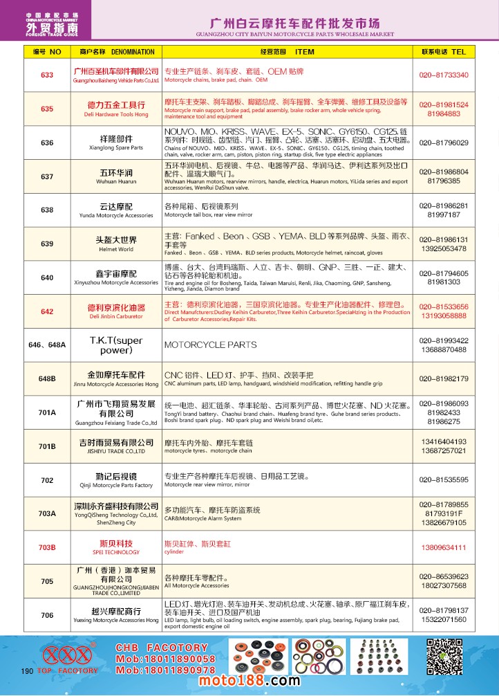由《摩托車與配件》雜志社,在國內(nèi)首次獨(dú)家推出的《中國摩托車配件外貿(mào)市場指南》工具書正式面世。這是一本專業(yè)定位于外貿(mào)企業(yè)的工具書,隨著一帶一路發(fā)展戰(zhàn)略的推進(jìn),更多企業(yè)走出國門,將產(chǎn)品銷往世界各地,本書收集了國內(nèi)主要從事摩托車配件外貿(mào)的工廠、商家、國外部分駐華采購機(jī)構(gòu)等資料匯總而成.