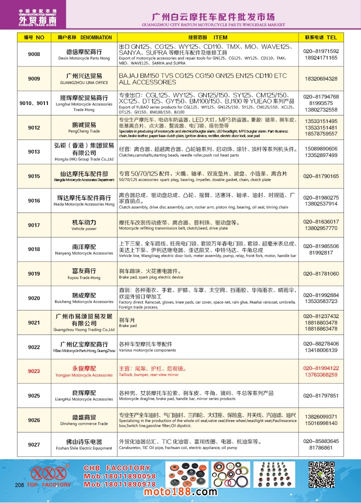 由《摩托車與配件》雜志社,在國(guó)內(nèi)首次獨(dú)家推出的《中國(guó)摩托車配件外貿(mào)市場(chǎng)指南》工具書正式面世。這是一本專業(yè)定位于外貿(mào)企業(yè)的工具書,隨著一帶一路發(fā)展戰(zhàn)略的推進(jìn),更多企業(yè)走出國(guó)門,將產(chǎn)品銷往世界各地,本書收集了國(guó)內(nèi)主要從事摩托車配件外貿(mào)的工廠、商家、國(guó)外部分駐華采購(gòu)機(jī)構(gòu)等資料匯總而成.