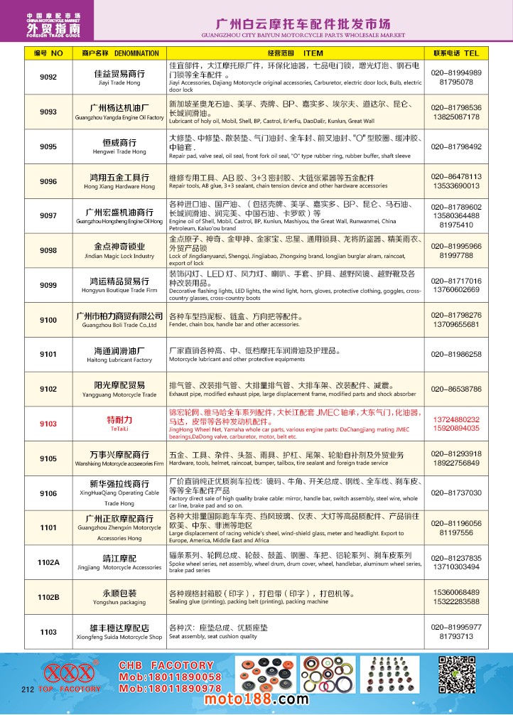 由《摩托車與配件》雜志社,在國內(nèi)首次獨(dú)家推出的《中國摩托車配件外貿(mào)市場(chǎng)指南》工具書正式面世。這是一本專業(yè)定位于外貿(mào)企業(yè)的工具書,隨著一帶一路發(fā)展戰(zhàn)略的推進(jìn),更多企業(yè)走出國門,將產(chǎn)品銷往世界各地,本書收集了國內(nèi)主要從事摩托車配件外貿(mào)的工廠、商家、國外部分駐華采購機(jī)構(gòu)等資料匯總而成.