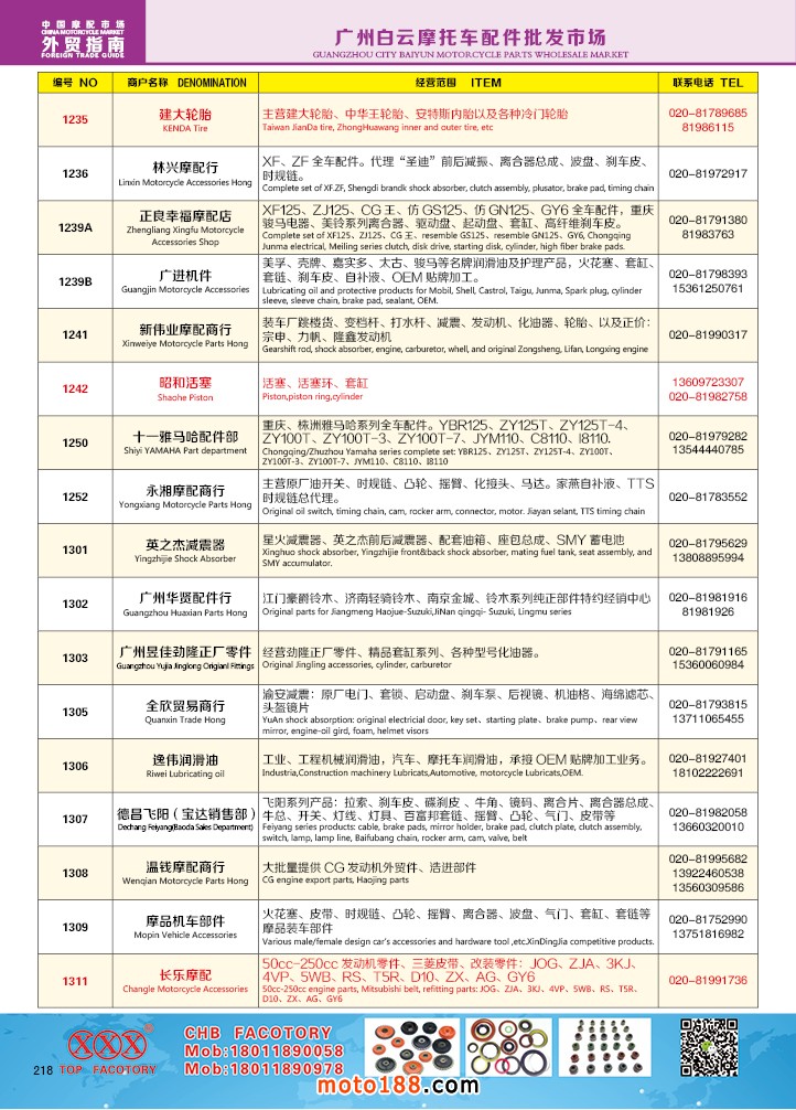 《中國(guó)摩托車配件外貿(mào)市場(chǎng)指南》和我們以前所編的《國(guó)內(nèi)六大地區(qū)的市場(chǎng)指南》有所不同,具有如下的特點(diǎn):