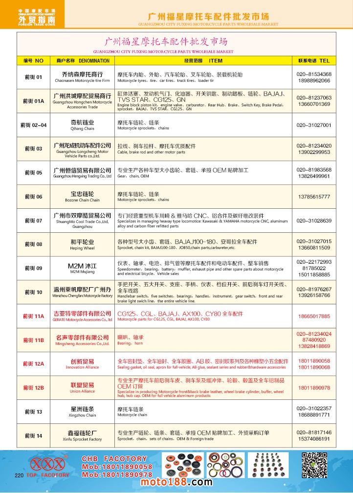 由《摩托車與配件》雜志社,在國(guó)內(nèi)首次獨(dú)家推出的《中國(guó)摩托車配件外貿(mào)市場(chǎng)指南》工具書正式面世。這是一本專業(yè)定位于外貿(mào)企業(yè)的工具書,隨著一帶一路發(fā)展戰(zhàn)略的推進(jìn),更多企業(yè)走出國(guó)門,將產(chǎn)品銷往世界各地,本書收集了國(guó)內(nèi)主要從事摩托車配件外貿(mào)的工廠、商家、國(guó)外部分駐華采購(gòu)機(jī)構(gòu)等資料匯總而成.