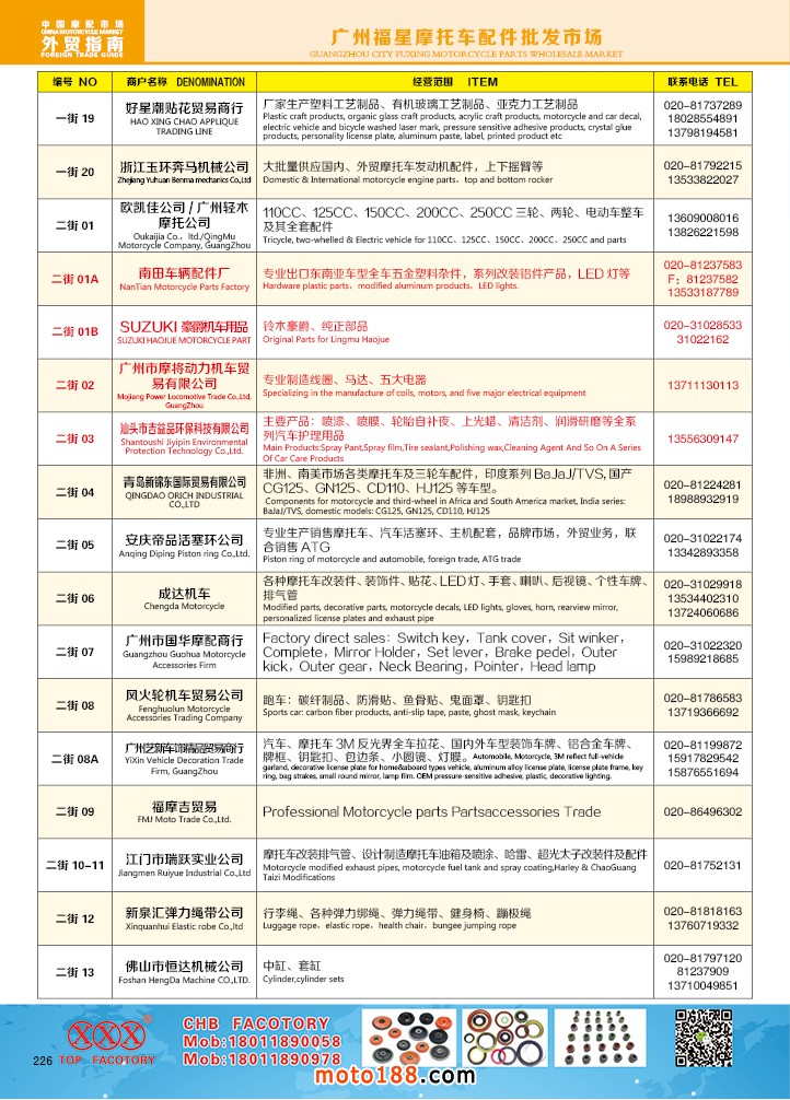 由《摩托車與配件》雜志社,在國(guó)內(nèi)首次獨(dú)家推出的《中國(guó)摩托車配件外貿(mào)市場(chǎng)指南》工具書正式面世。這是一本專業(yè)定位于外貿(mào)企業(yè)的工具書,隨著一帶一路發(fā)展戰(zhàn)略的推進(jìn),更多企業(yè)走出國(guó)門,將產(chǎn)品銷往世界各地,本書收集了國(guó)內(nèi)主要從事摩托車配件外貿(mào)的工廠、商家、國(guó)外部分駐華采購(gòu)機(jī)構(gòu)等資料匯總而成.