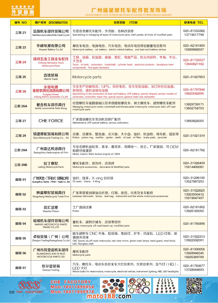 內(nèi)232 廣州福星摩托車配件批發(fā)市場(chǎng)