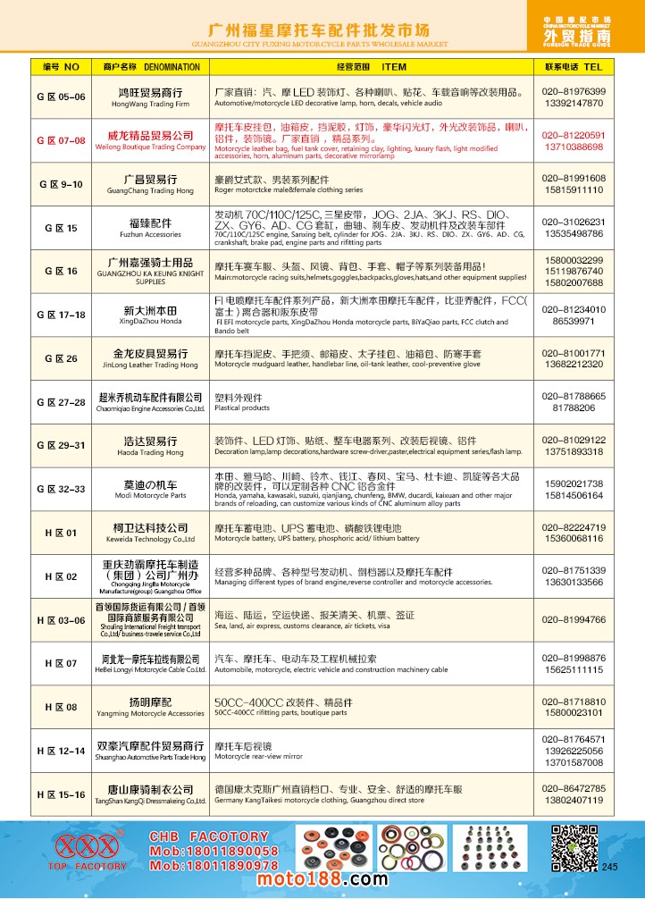 由《摩托車與配件》雜志社,在國內(nèi)首次獨(dú)家推出的《中國摩托車配件外貿(mào)市場(chǎng)指南》工具書正式面世。這是一本專業(yè)定位于外貿(mào)企業(yè)的工具書,隨著一帶一路發(fā)展戰(zhàn)略的推進(jìn),更多企業(yè)走出國門,將產(chǎn)品銷往世界各地,本書收集了國內(nèi)主要從事摩托車配件外貿(mào)的工廠、商家、國外部分駐華采購機(jī)構(gòu)等資料匯總而成.