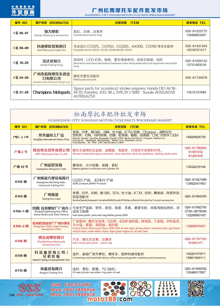 由《摩托車與配件》雜志社,在國內(nèi)首次獨家推出的《中國摩托車配件外貿(mào)市場指南》工具書正式面世。這是一本專業(yè)定位于外貿(mào)企業(yè)的工具書,隨著一帶一路發(fā)展戰(zhàn)略的推進(jìn),更多企業(yè)走出國門,將產(chǎn)品銷往世界各地,本書收集了國內(nèi)主要從事摩托車配件外貿(mào)的工廠、商家、國外部分駐華采購機構(gòu)等資料匯總而成.