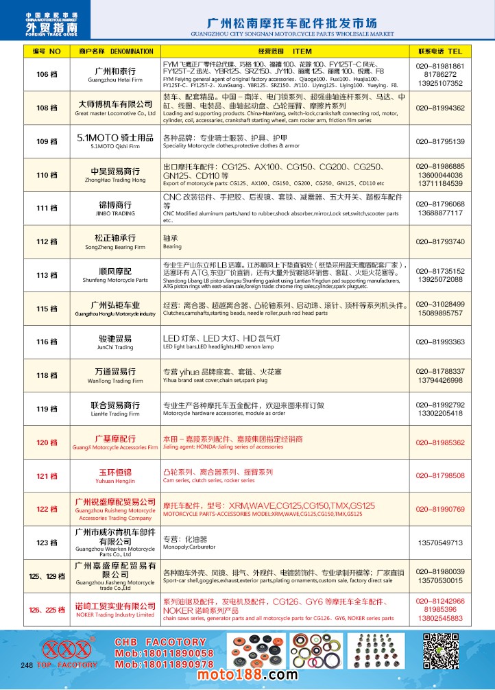 由《摩托車與配件》雜志社,在國內(nèi)首次獨家推出的《中國摩托車配件外貿(mào)市場指南》工具書正式面世。這是一本專業(yè)定位于外貿(mào)企業(yè)的工具書,隨著一帶一路發(fā)展戰(zhàn)略的推進,更多企業(yè)走出國門,將產(chǎn)品銷往世界各地,本書收集了國內(nèi)主要從事摩托車配件外貿(mào)的工廠、商家、國外部分駐華采購機構(gòu)等資料匯總而成.