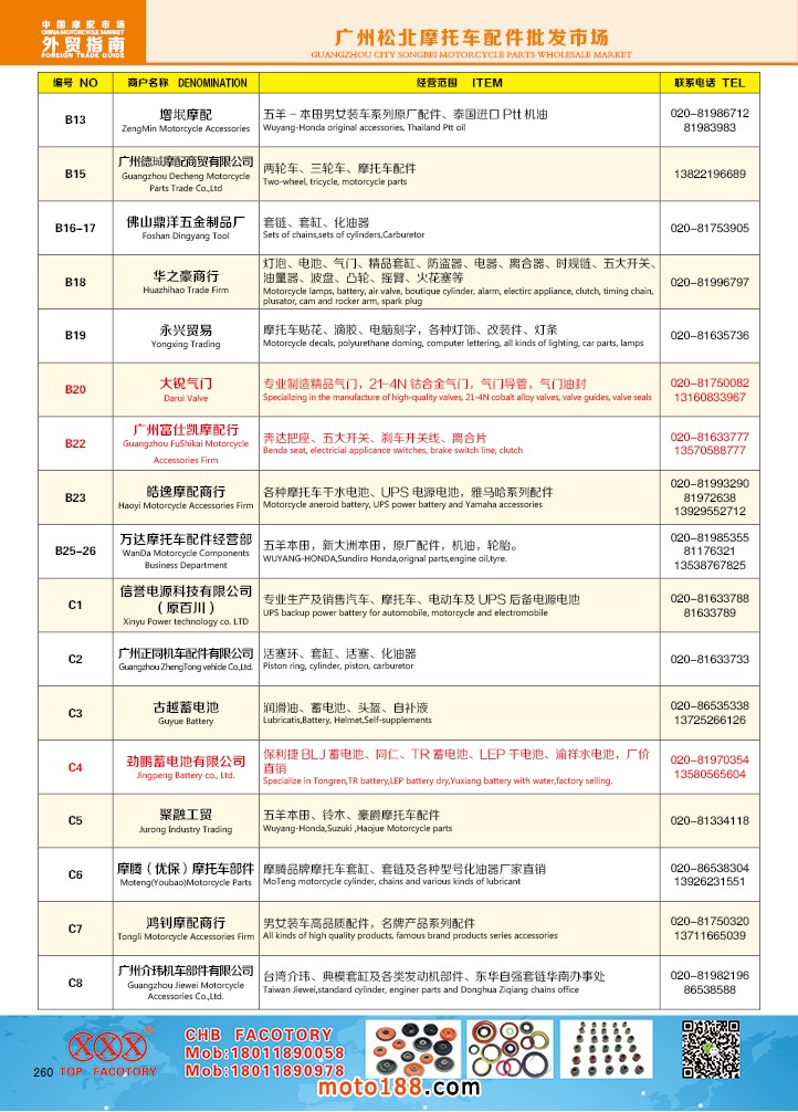 由《摩托車與配件》雜志社,在國內(nèi)首次獨家推出的《中國摩托車配件外貿(mào)市場指南》工具書正式面世。這是一本專業(yè)定位于外貿(mào)企業(yè)的工具書,隨著一帶一路發(fā)展戰(zhàn)略的推進,更多企業(yè)走出國門,將產(chǎn)品銷往世界各地,本書收集了國內(nèi)主要從事摩托車配件外貿(mào)的工廠、商家、國外部分駐華采購機構等資料匯總而成.
