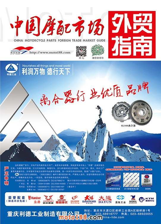 由《摩托車與配件》雜志社,在國(guó)內(nèi)首次獨(dú)家推出的《中國(guó)摩托車配件外貿(mào)市場(chǎng)指南》工具書正式面世。這是一本專業(yè)定位于外貿(mào)企業(yè)的工具書,隨著一帶一路發(fā)展戰(zhàn)略的推進(jìn),更多企業(yè)走出國(guó)門,將產(chǎn)品銷往世界各地,本書收集了國(guó)內(nèi)主要從事摩托車配件外貿(mào)的工廠、商家、國(guó)外部分駐華采購(gòu)機(jī)構(gòu)等資料匯總而成.