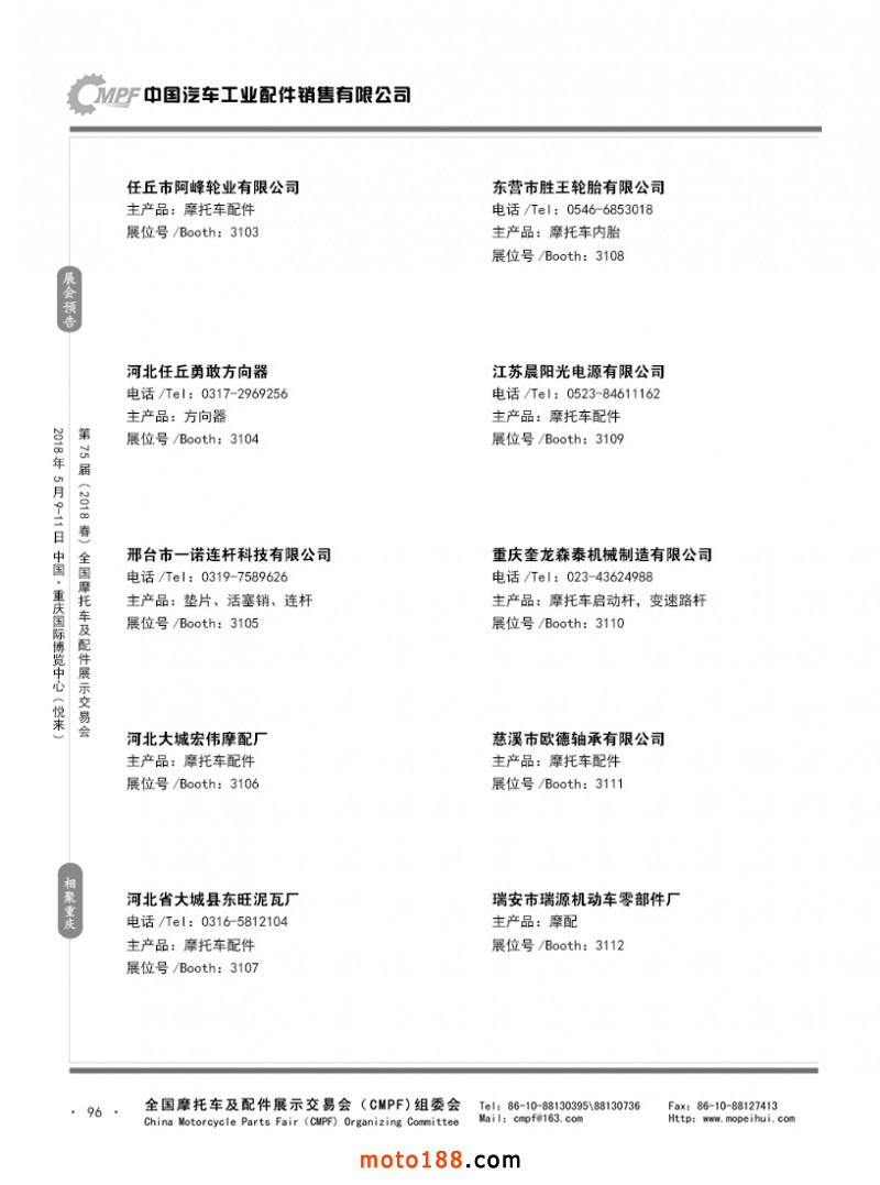 內(nèi)96 第74屆(2017秋)全國(guó)摩托車(chē)及配件展示交易會(huì)-廣州站參展企業(yè)名錄