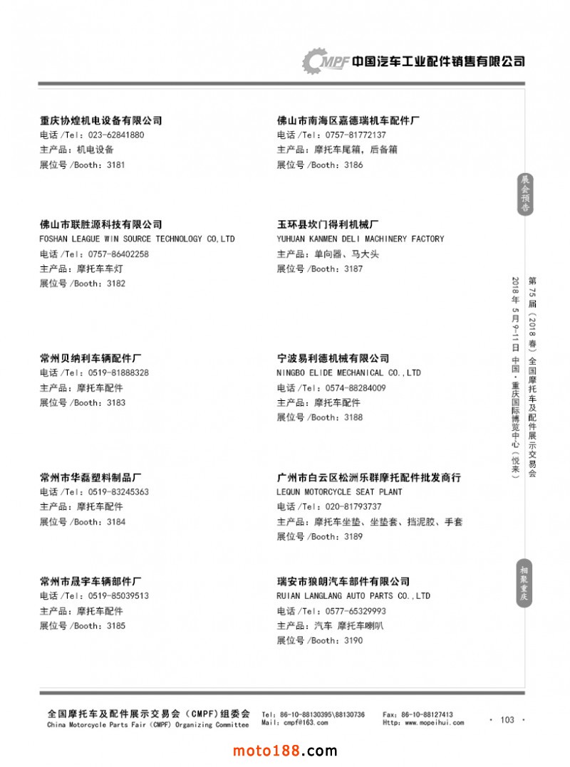 內(nèi)103 第74屆(2017秋)全國摩托車及配件展示交易會-廣州站參展企業(yè)名錄