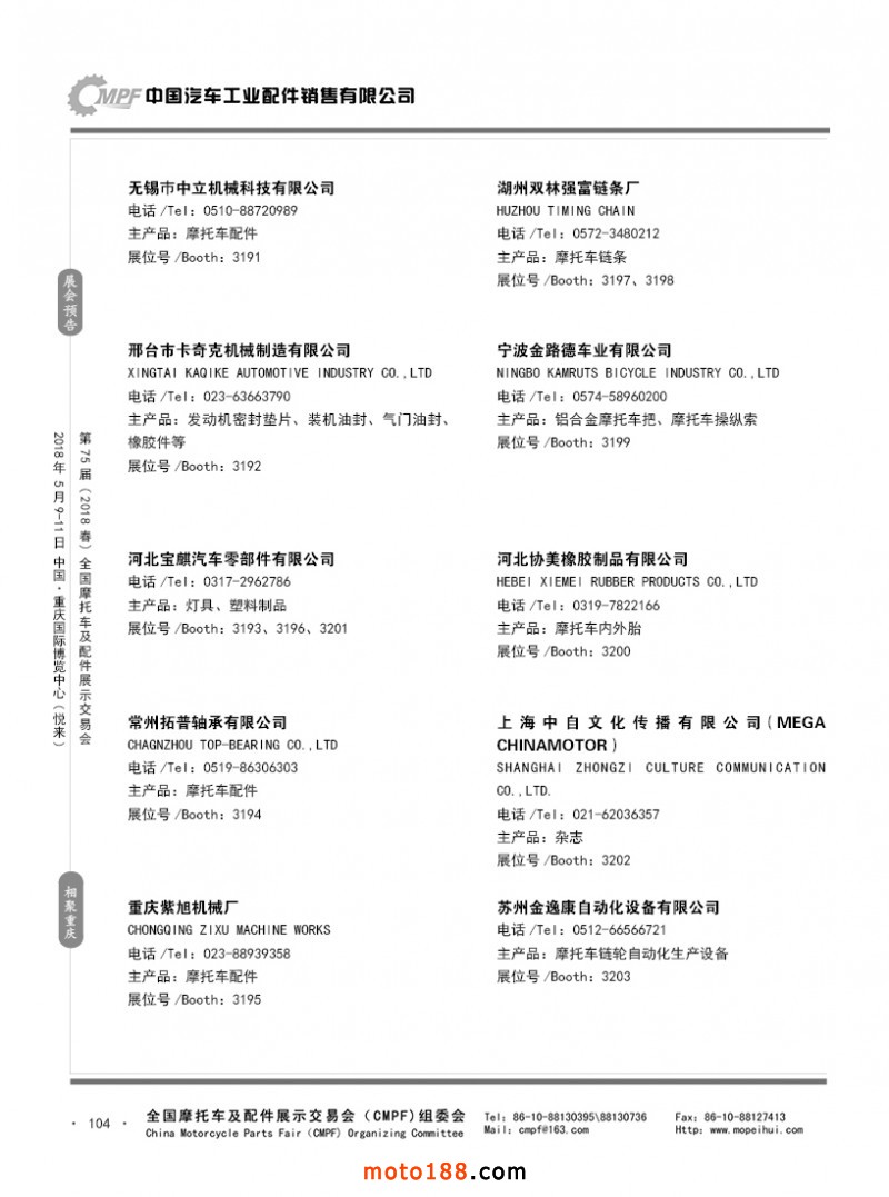 內(nèi)104 第74屆(2017秋)全國摩托車及配件展示交易會-廣州站參展企業(yè)名錄