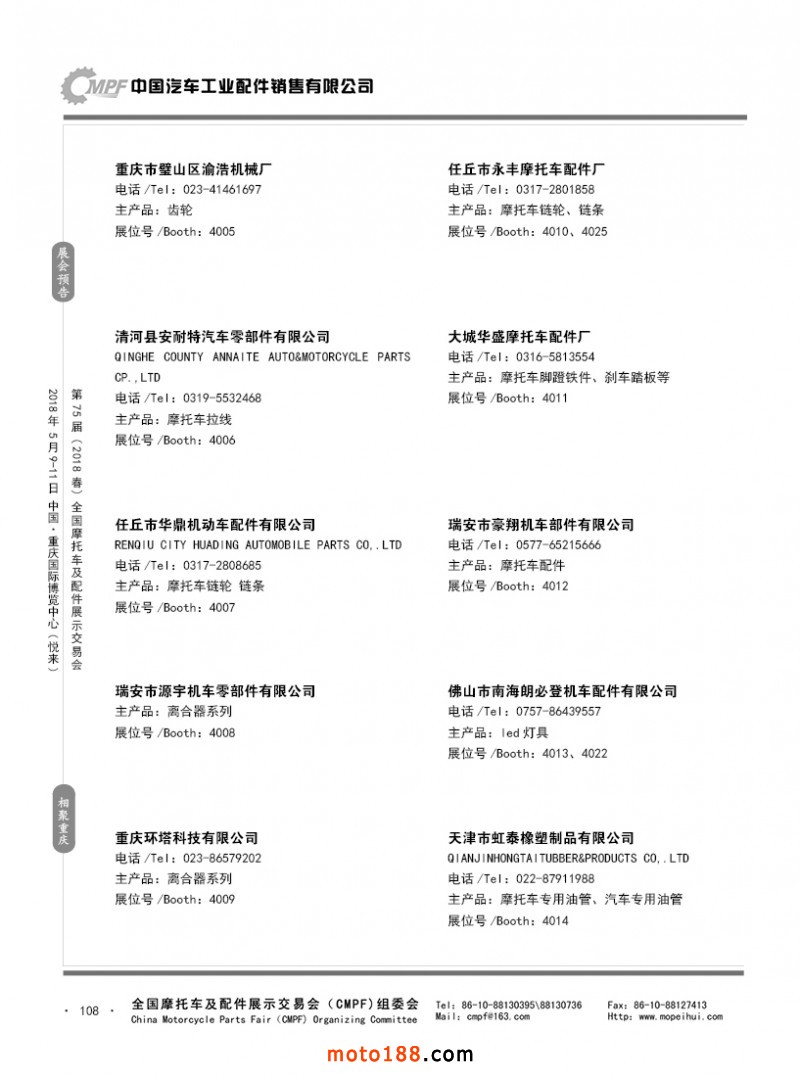 內(nèi)108 第74屆(2017秋)全國摩托車及配件展示交易會(huì)-廣州站參展企業(yè)名錄