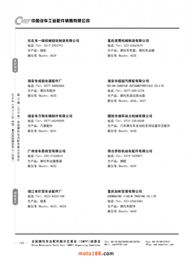 內(nèi)110 第74屆(2017秋)全國(guó)摩托車及配件展示交易會(huì)-廣州站參展企業(yè)名錄
