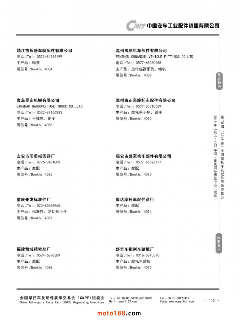 內(nèi)115 第74屆(2017秋)全國摩托車及配件展示交易會-廣州站參展企業(yè)名錄