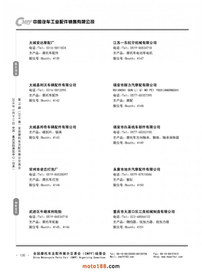 內(nèi)120 第74屆(2017秋)全國摩托車及配件展示交易會-廣州站參展企業(yè)名錄