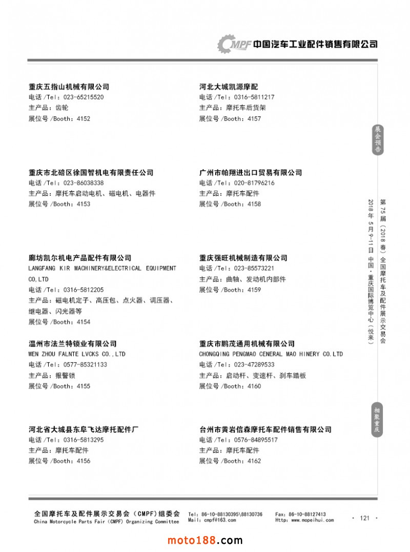 內(nèi)121 第74屆(2017秋)全國(guó)摩托車及配件展示交易會(huì)-廣州站參展企業(yè)名錄