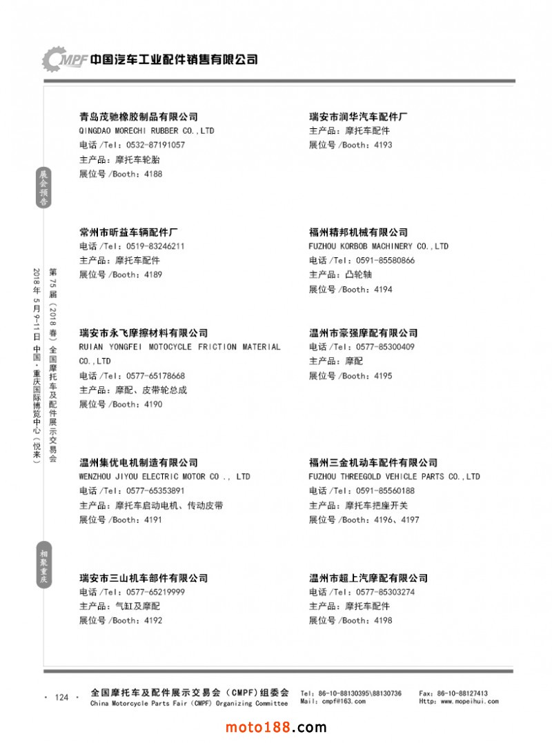 內124 第74屆(2017秋)全國摩托車及配件展示交易會-廣州站參展企業(yè)名錄