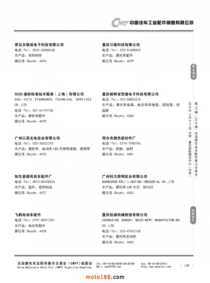 內(nèi)149 第74屆(2017秋)全國摩托車及配件展示交易會-廣州站參展企業(yè)名錄