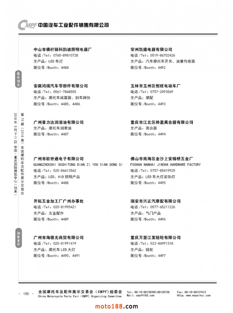 內(nèi)150 第74屆(2017秋)全國(guó)摩托車(chē)及配件展示交易會(huì)-廣州站參展企業(yè)名錄