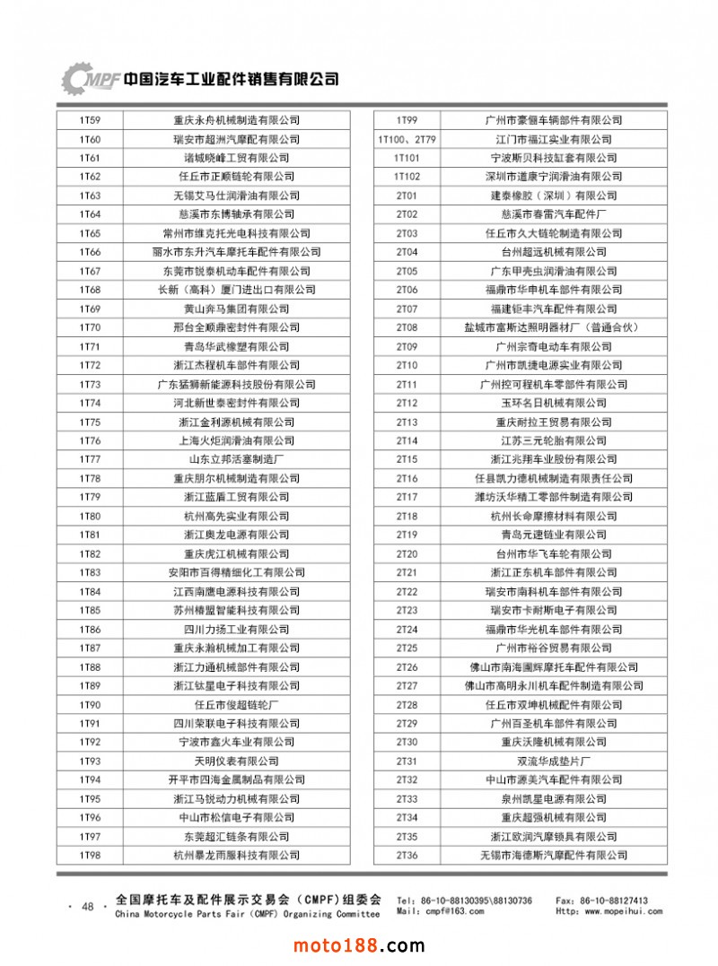 內(nèi)48 第74屆(2017秋)全國摩托車及配件展示交易會-廣州站參展單位名錄