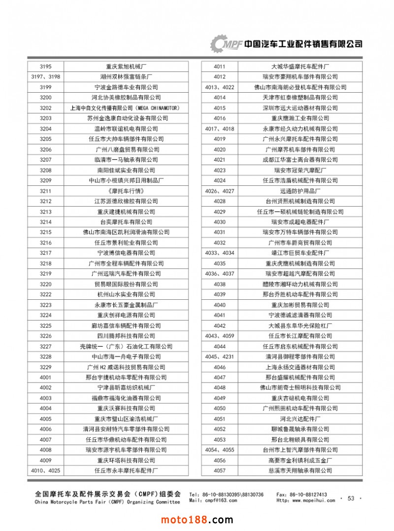 內(nèi)53 第74屆(2017秋)全國摩托車及配件展示交易會-廣州站參展單位名錄