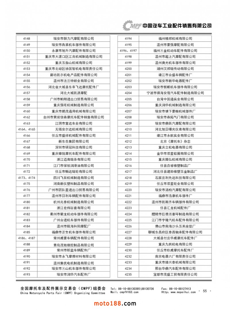 內(nèi)55 第74屆(2017秋)全國(guó)摩托車及配件展示交易會(huì)-廣州站參展單位名錄