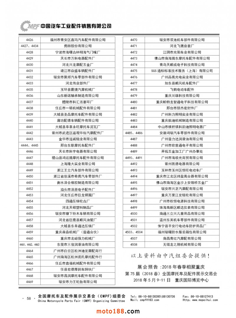 內(nèi)58 第74屆(2017秋)全國(guó)摩托車及配件展示交易會(huì)-廣州站參展單位名錄