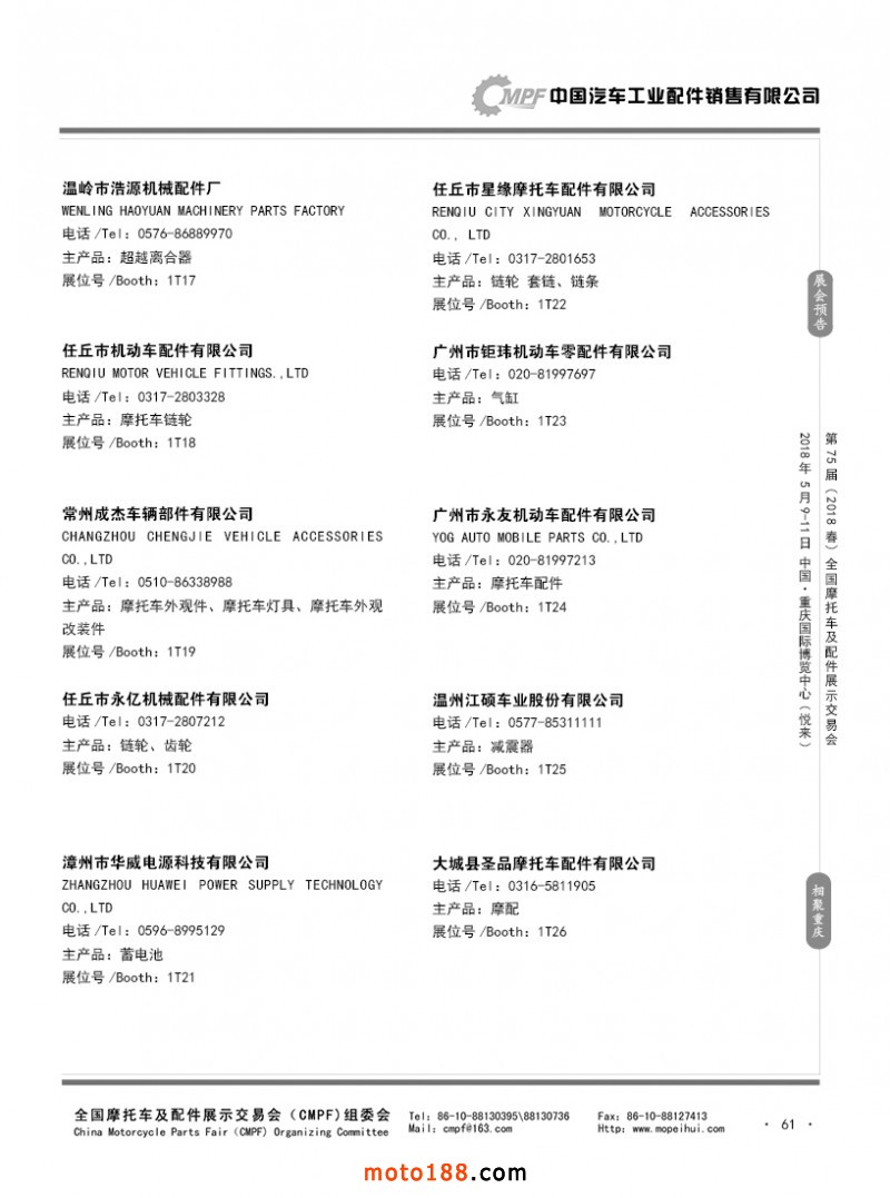 內(nèi)61 第74屆(2017秋)全國(guó)摩托車及配件展示交易會(huì)-廣州站參展企業(yè)名錄