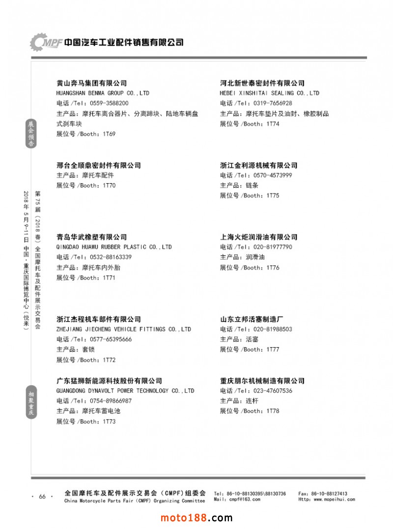 內(nèi)66 第74屆(2017秋)全國(guó)摩托車及配件展示交易會(huì)-廣州站參展企業(yè)名錄