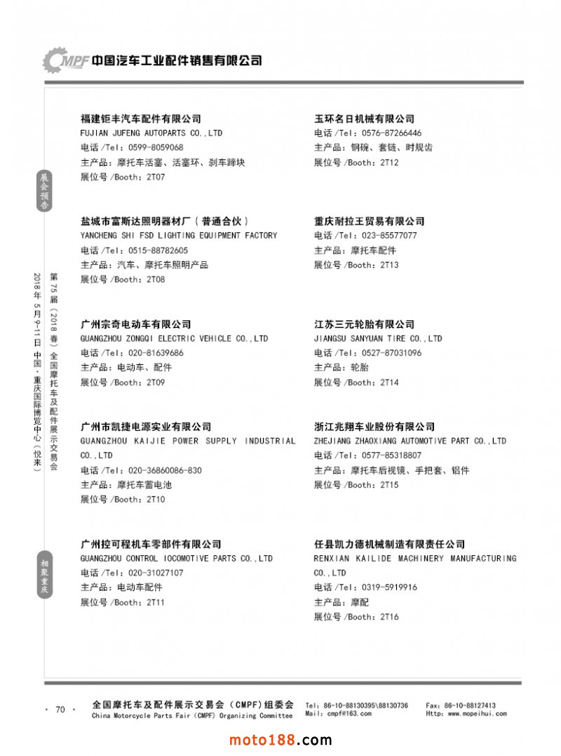 內(nèi)70 第74屆(2017秋)全國(guó)摩托車及配件展示交易會(huì)-廣州站參展企業(yè)名錄