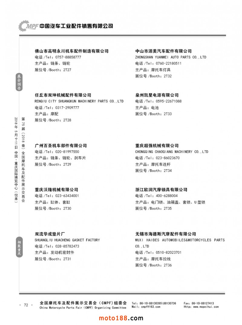 內(nèi)72 第74屆(2017秋)全國摩托車及配件展示交易會-廣州站參展企業(yè)名錄