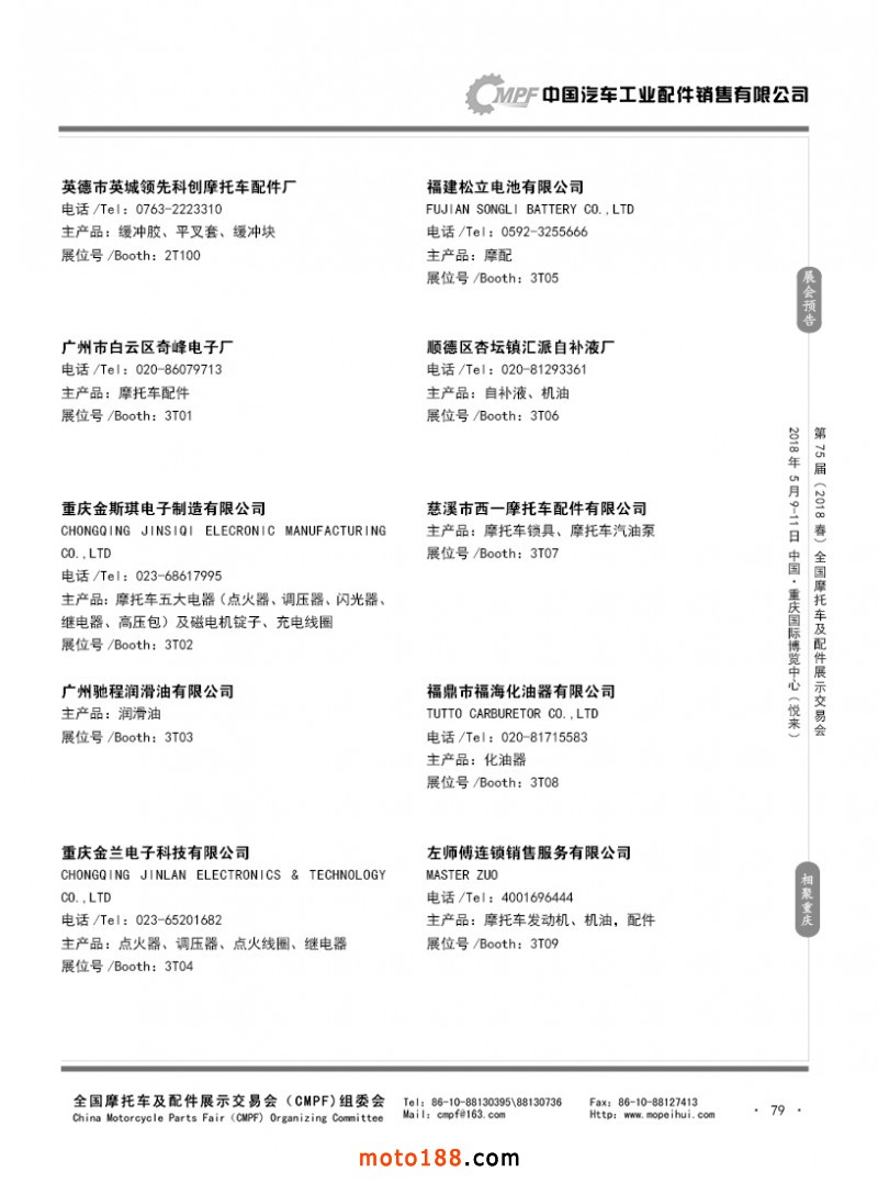 內(nèi)79 第74屆(2017秋)全國(guó)摩托車及配件展示交易會(huì)-廣州站參展企業(yè)名錄